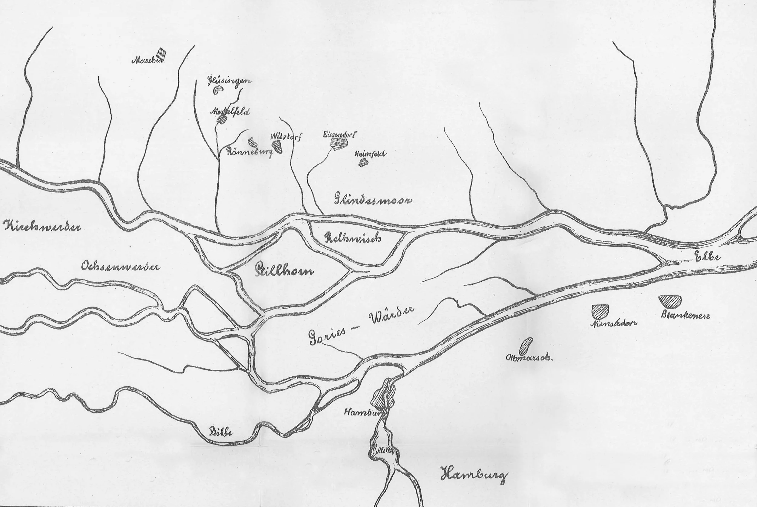 Im Urstromtal der Elbe, beiderseits der Geestränder des Harburger und des Hamburger Geestabhanges, liegt in der Elbmarsch die Elbinsel Wilhelmsburg.
