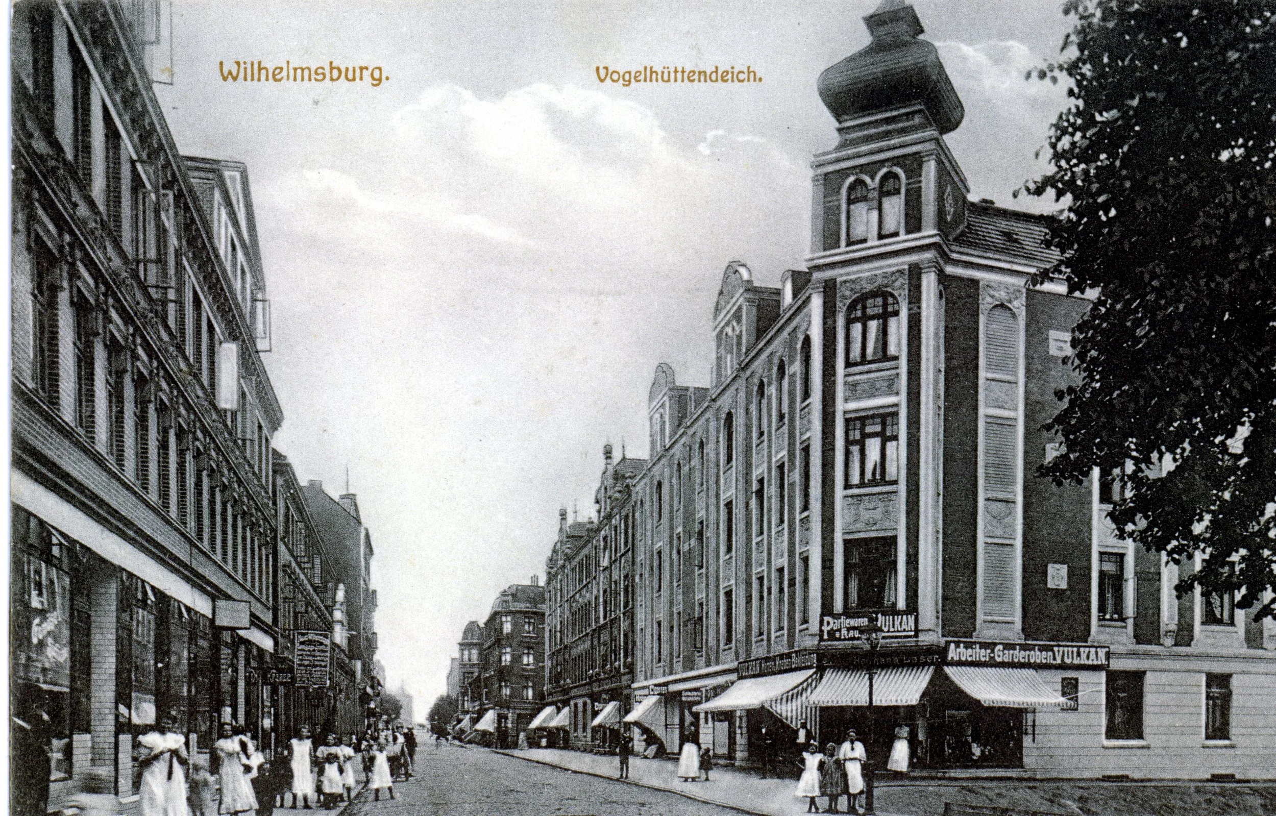 Hermann Laser hatte sich am 29. Juni 1907 zusammen mit seiner Frau Regina, geb. Zielinski am 19.9.1879 in der Provinz Posen (heute Poznán, Polen), in Wilhelmsburg am Vogelhüttendeich niedergelassen. Einen Tag später, am 30. Juni 1907, eröffnete er unter dem Namen "Vulkan" ein Konfektionsgeschäft und verkaufte Schuhe, Herren-, Knaben- und Arbeiterbekleidung.